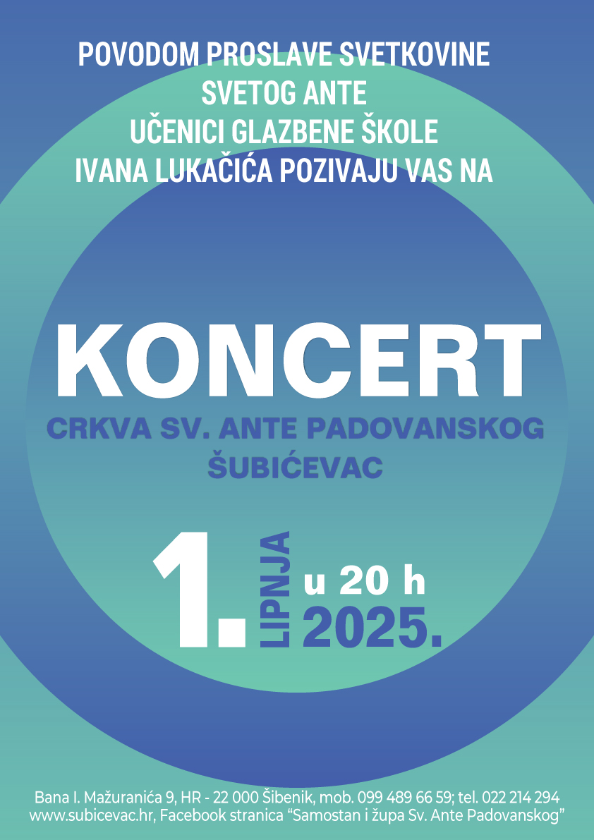 NaslovnicaIstaknutoNAJAVA: Koncert IstaknutoNajave NAJAVA: Koncert 25. svibnja 2025. 0 196 Share FacebookTwitterPinterestWhatsApp Prethodni članakNAJAVA: 7 darova Duha SvetogaSljedeći članakNAJAVA: Devetnica sv. Anti Povezani članci Istaknuto RASPORED BOGOSLUŽJA I OBAVIJESTI ( 9.-16. studenoga 2025.) 10. studenoga 2025. Istaknuto RASPORED BOGOSLUŽJA I OBAVIJESTI ( 2.-9. studenoga 2025.) 3. studenoga 2025. Istaknuto RASPORED BOGOSLUŽJA I OBAVIJESTI (27.listopada-2. studenoga 2025.) 28. listopada 2025. Najnovije vijesti RASPORED BOGOSLUŽJA I OBAVIJESTI ( 9.-16. studenoga 2025.) 10. studenoga 2025. RASPORED BOGOSLUŽJA I OBAVIJESTI ( 2.-9. studenoga 2025.) 3. studenoga 2025. RASPORED BOGOSLUŽJA I OBAVIJESTI (27.listopada-2. studenoga 2025.) 28. listopada 2025. RASPORED BOGOSLUŽJA I OBAVIJESTI (20.-26.listopada 2025.) 22. listopada 2025. Učitaj više